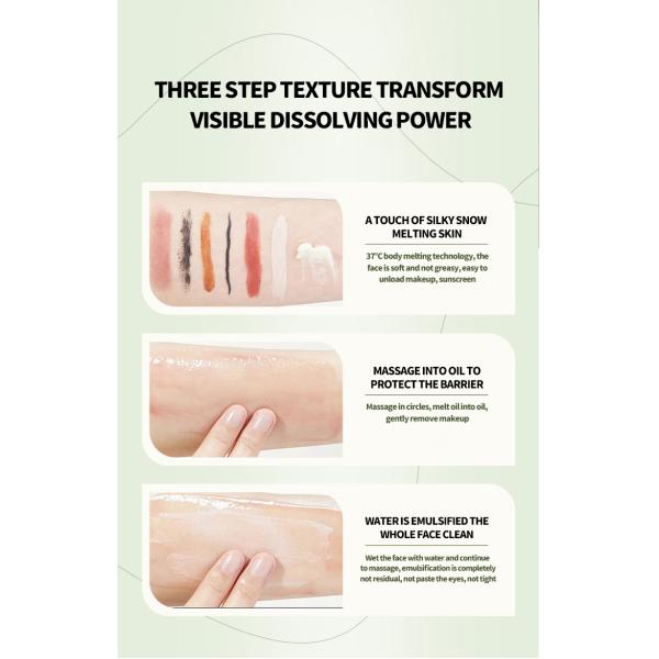 The product not only has excellent efficacy, but also focuses on user experience. The natural and fresh aroma, smooth texture, and efficient makeup removal effect can all bring users a pleasant makeup removal experience, making makeup removal a pleasure.